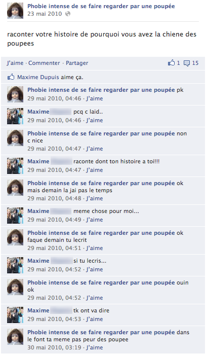 Racontez votre peur de : vous faire regarder de façon intense par une poupée.