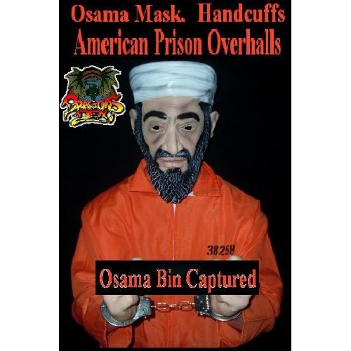 Mais quoi de plus amusant que de se déguiser en Ben Laden pour une soirée ou une partie de jambes en l’air ? Avec cette série de masques et de costumes, vous pourrez amuser vos amis ! Prenez par exemple le déguisement Scared Osama où le chef d’Al-Qaida apparaît terrifié et avec un missile à travers le visage. Un bon investissement. Le nec le plus ultra est cependant le costume suivant, l’idéal pour vêtir votre femme et vous adonner à de délicieuses pratiques sado-masochistes : le “Osama Captured Cuffs Costume” représente Osama capturé, vêtu d’une tenue dans le style des prisonnier de Guantanamo et attaché, prêt à être molesté.