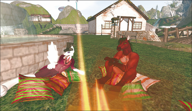 J’assume IRL … je ne sais pas, j’assume le fait d’être un furry dans SL, et il m’est arrivé de dire en réel que je me considérait comme un furry quand l’occasion s’est présentée, mais je ne fais pas de prosélytisme. Je n’ai pas rencontré mes amis furry en réel, en dehors d’une ou deux connaissances de SL, qui m’avaient invité à aller voir un de leur spectacle RL (sans rapport avec le furry).