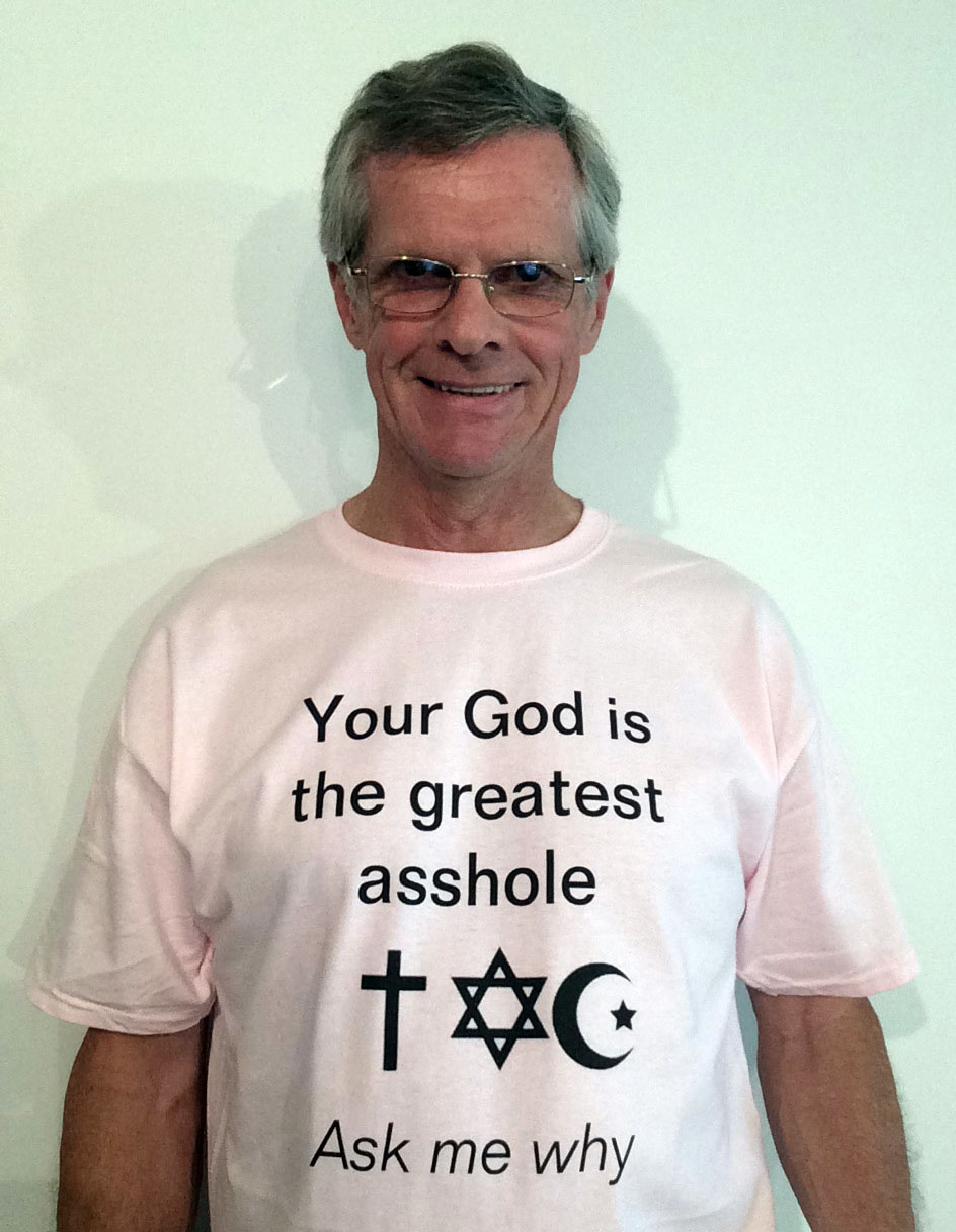 I started blogging on the Internet in 1995. In 1998, I registered the domain name atheists.net, my first web site. So, you can see that I’ve been doing this for quite some time. I like to think that I’ve been pushing the envelope for society dropping religion, but there are now thousands of antitheists on the Internet contributing to the effort. For about 20 years I branded myself with the same “throw-away-the-cross” t-shirt, but now I have over 20 shirts up at www.666shirts.com. I’m not retired yet, but when I am, I promise to expand my efforts regarding my web sites.