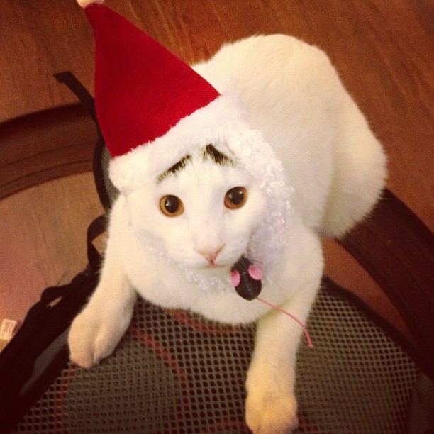 On March 2012, Sam’s owner found a empty cat carrier in front of his house. At first he didn’t give it much thought until he noticed a cat, showing a very distinctive marking, hidden away in a small crevice behind his house. After taking Sam in, the owner did not want to get to attached to Sam at first, as they already owned two cats and knew they couldn’t keep a third. But — since no mere mortal could ever resist such a Disney-cute stare — they decided to keep Sam instead.