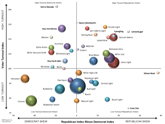 Plutôt de droite ? Plutôt de gauche ? Plutôt Kanterbrau ? Plutôt Pelforth ? Une étude récente sur 200 000 américains a cherché à trouver une correlation entre les goûts en matière de bières et les orientations politiques. En conclusion, si les amateurs de Corona sont plutôt Républicains, la Stellas Artois est une boisson de démocrate. A quand une étude de ce type en France ? Et, surtout, faire boire de la Stella Artois à un Républicain peut-il affecter ses opinions politiques ?