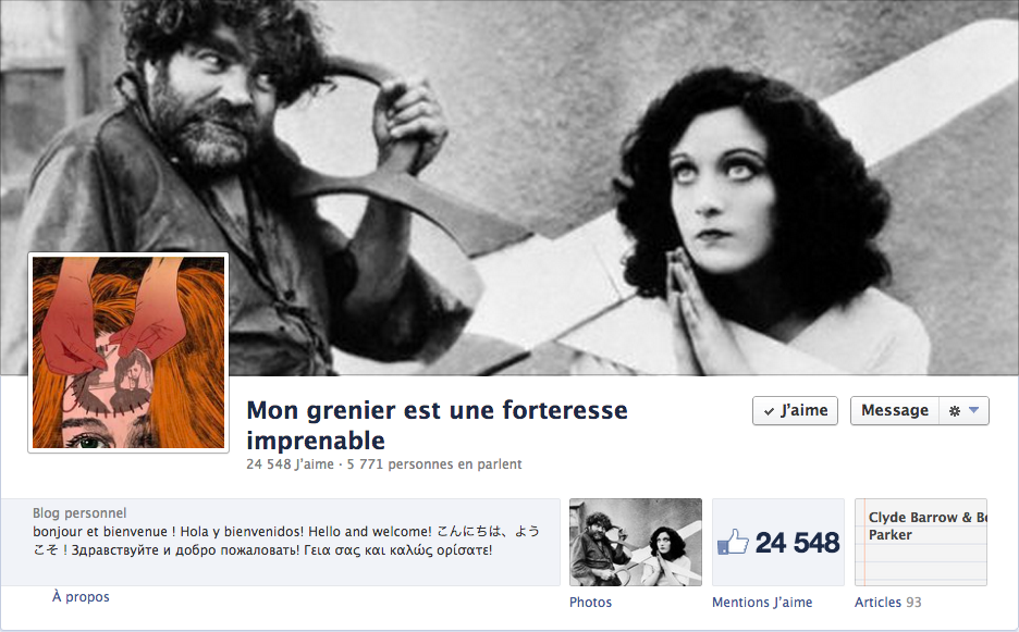 je suis le seul à l’entretenir, parce que je pense que c’est la garantie ( même sur facebook ) d’avoir un lieu qui possède une âme. Jean-Pierre Dionnet, (NDLR : célèbre critique de cinéma) a dit du grenier qu’il avait «une colonne vertébrale». C’est exactement cela que je cherche… un énorme bric a brac qui a un sens ! Et puis mes expériences passées en ce qui concerne la gestion à plusieurs d’un espace virtuel m’ont refroidi à tout jamais…
